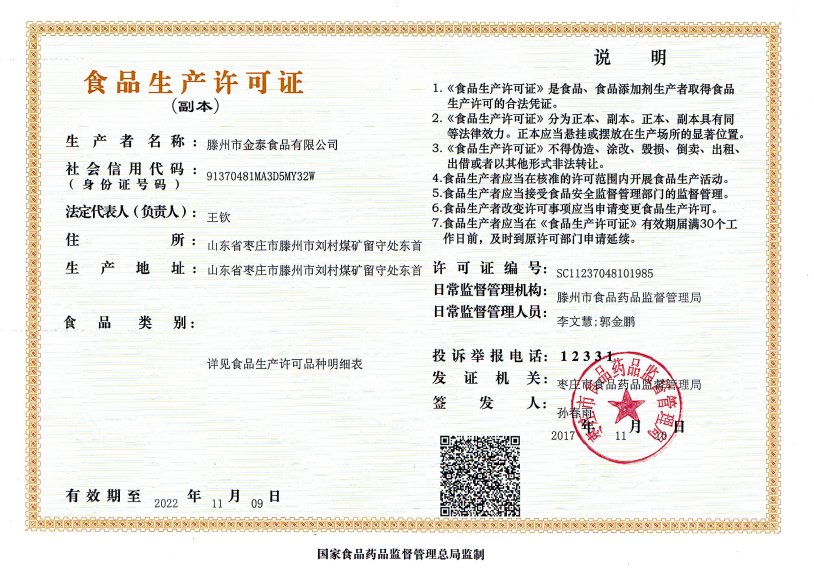 滕州市金泰食品股份有限公司是滕州一家大型民營(yíng)企業(yè),成立于2017年1月,法人石圣,企業(yè)坐落于山東省滕州市劉村煤礦院內(nèi),占地30畝,個(gè)人獨(dú)資企業(yè),現(xiàn)有員工50人,注冊(cè)資金800萬元。年生產(chǎn)能力10萬噸,產(chǎn)值2.4億元。